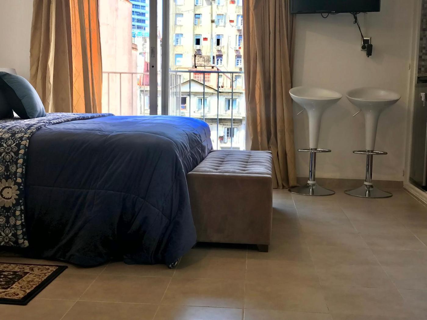 Apartamento Estudio. Boasting a private entrance, this air-conditioned apartment comes with a kitchen, 1 bedroom and 1 bathroom with a walk-in shower and a bath. In the kitchen, guests will find a stovetop, a refrigerator, kitchenware and a microwave. Featuring a balcony with city views, this apartment also features a tea and coffee maker and a flat-screen TV with cable channels. The unit has 1 bed.