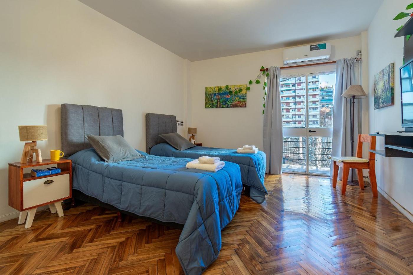 Estudio con dos camas individuales en Recoleta está en el barrio de Recoleta, en Buenos Aires, y tiene aire acondicionado, balcón y vistas a la ciudad. Se encuentra a 1,8 km de Museo Nacional de Bellas Artes y dispone de wifi gratis, además de recepción 24 horas.