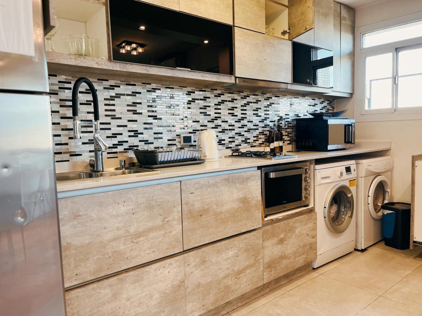 Este apartamento con aire acondicionado tiene acceso directo a un balcón y cuenta con 2 dormitorios independientes y cocina totalmente equipada.