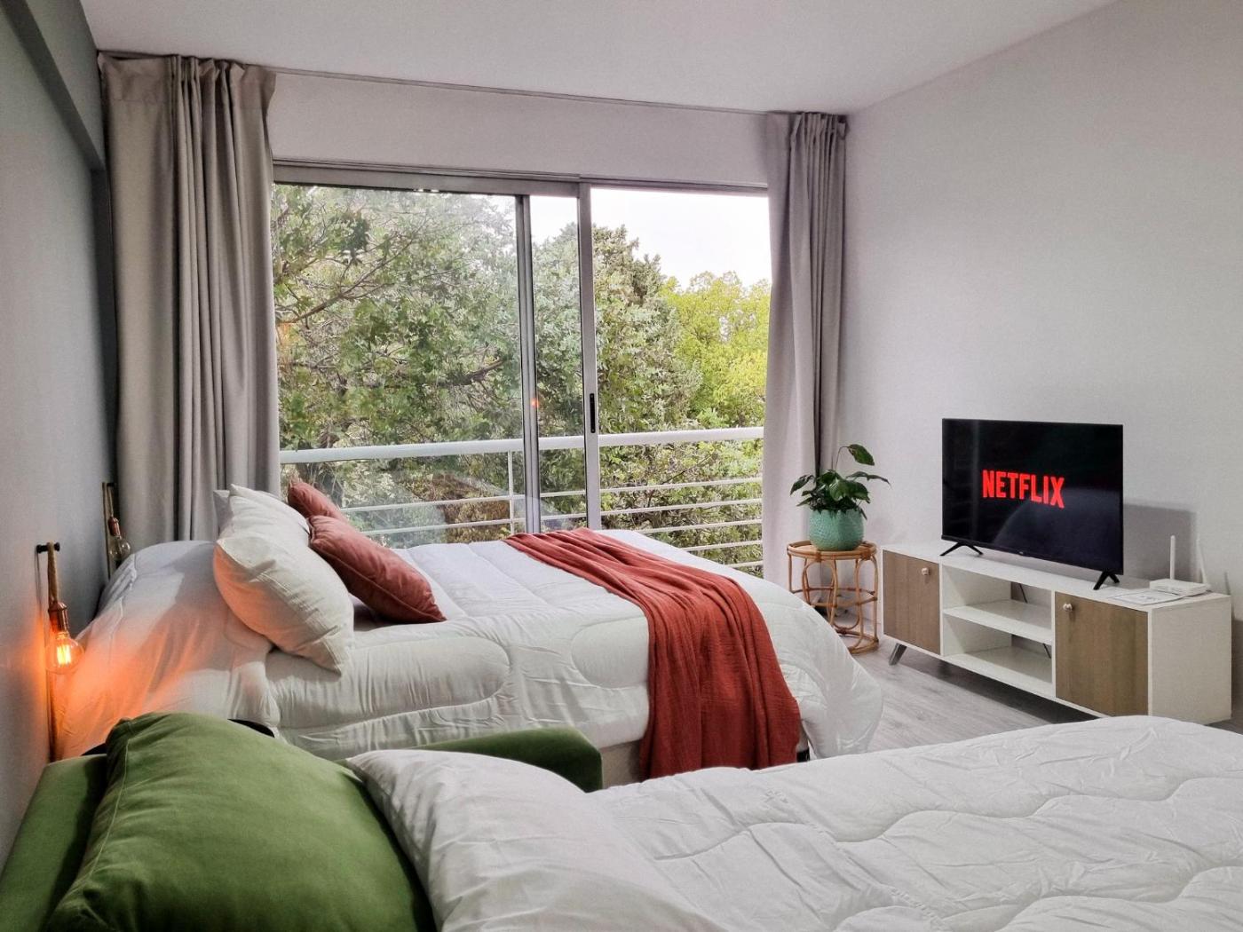 Estudio con cama extragrande y sofá cama. Featuring free toiletries, this studio includes a private bathroom with a bath, a shower and a bidet. Meals can be prepared in the kitchen, which has a refrigerator, kitchenware, an oven and a microwave. The air-conditioned studio features a flat-screen TV with streaming services, soundproof walls, a tea and coffee maker, a dining area as well as city views. The unit has 2 beds.