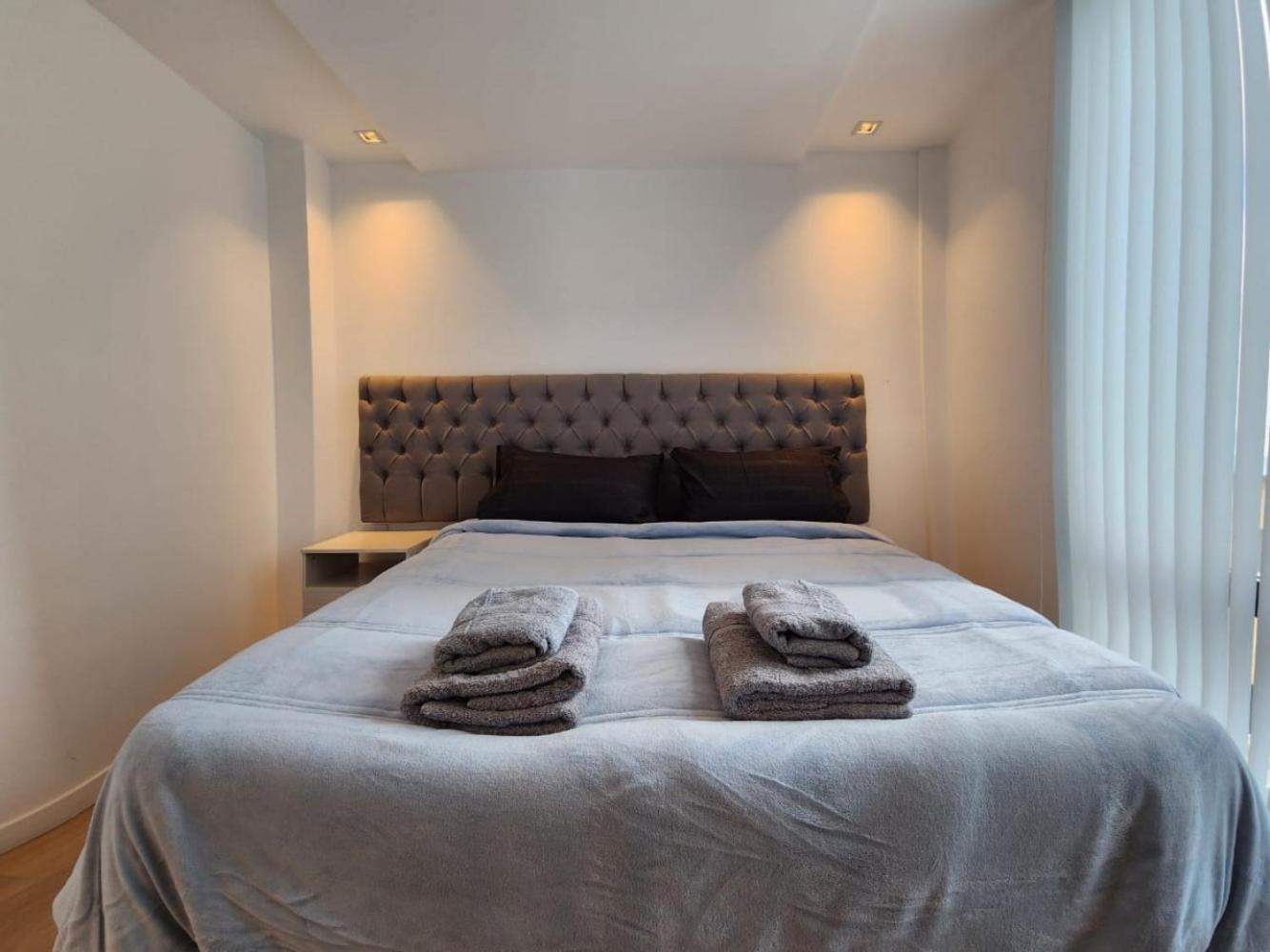 Este apartamento con aire acondicionado tiene acceso directo a un balcón y cuenta con 1 dormitorio independiente y cocina totalmente equipada.